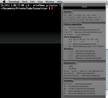 - When your mouse is in the blue region (the right-most quarter of the terminal), the cheatsheet under the mouse is displayed in the terminal.