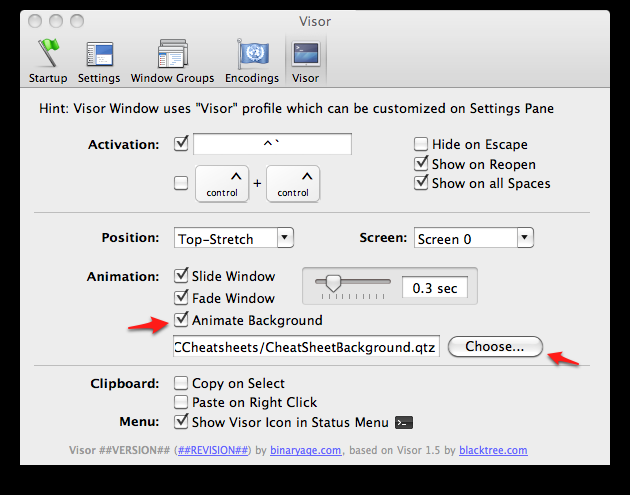 Please note that the current stable version of Visor does not yet support Quartz Compositions as backgrounds. Please compile from source.